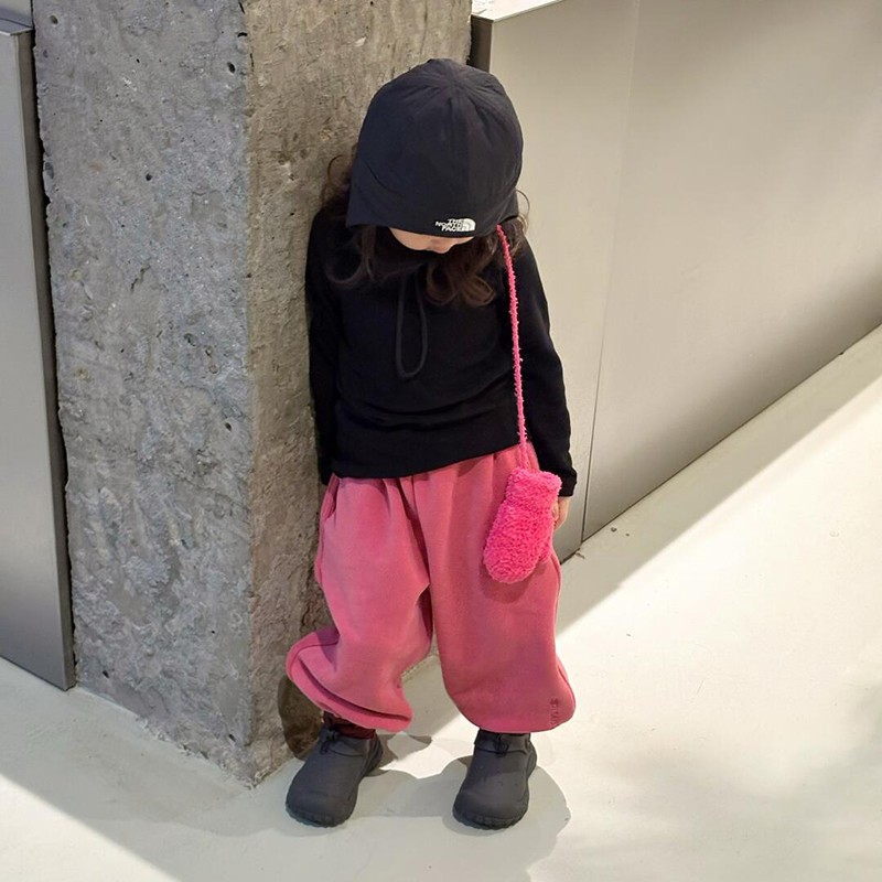 Girls' Autumn And Winter Rose Red Sweatpants